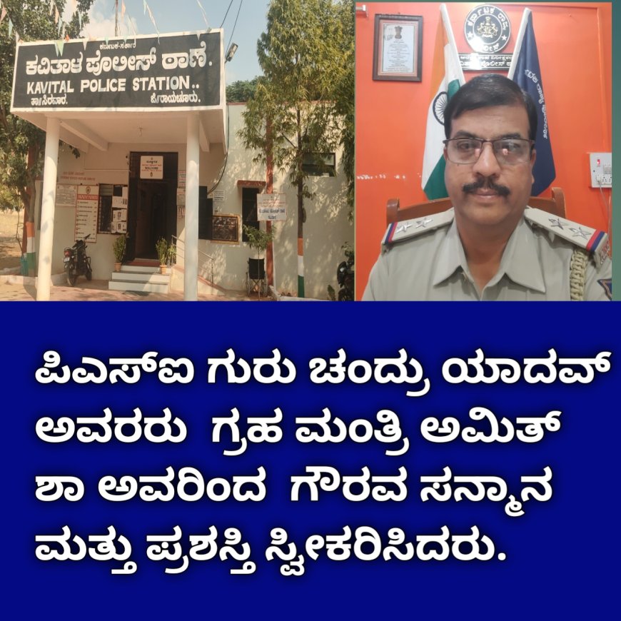 ರಾಯಚೂರು ಜಿಲ್ಲೆಯ ಮಾನ್ವಿ ತಾಲ್ಲೂಕಿನ ಕವಿತಾಳ ಪೊಲೀಸ್ ಠಾಣೆ,ಕೇಂದ್ರ ಗೃಹ ಸಚಿವಾಲಯದಿಂದ ಆಯ್ಕೆಮಾಡುವ ಅತ್ಯುತ್ತಮ ಠಾಣೆಗಳ ಪಟ್ಟಿಯಲ್ಲಿ 2025 ನೇ ಸಾಲಿನಲ್ಲಿ ಸ್ಥಾನ ಪಡೆದಿದೆ. ಕವಿತಾಳ ಪಿಎಸ್ಐ ಗುರು ಚಂದ್ರು ಯಾದವ್ ಅವರರು ಗ್ರಹ ಮಂತ್ರಿ ಅಮಿತ್ ಶಾ ಅವರಿಂದ ಗೌರವ ಸನ್ಮಾನ ಮತ್ತು ಪ್ರಶಸ್ತಿ ಸ್ವೀಕರಿಸಿದರು.